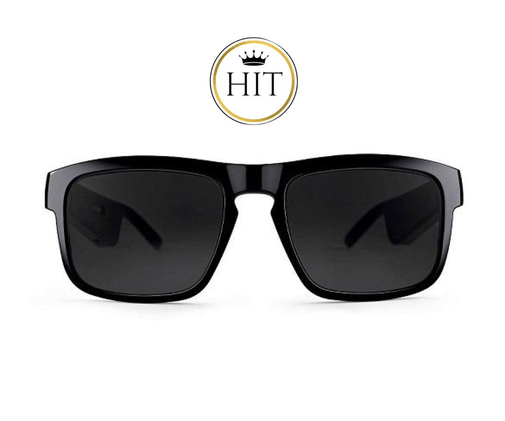 Gafas de sol rectangulares con Bluetooth: acabado en negro de alto brillo, el estilo hace alardear de un refinado marco cuadrado, un puente distintivo y materiales ultramodernos.
