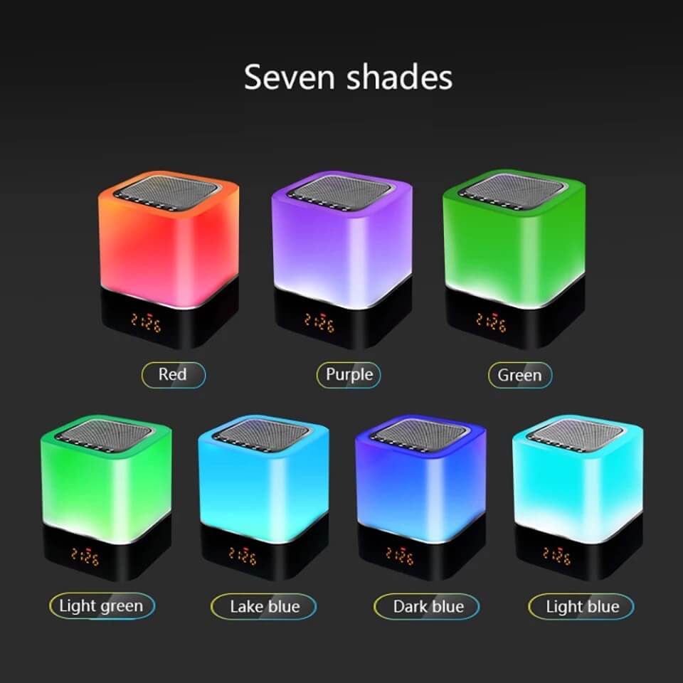 Parlante Bluetooth con reloj y lámpara de mesita de noche