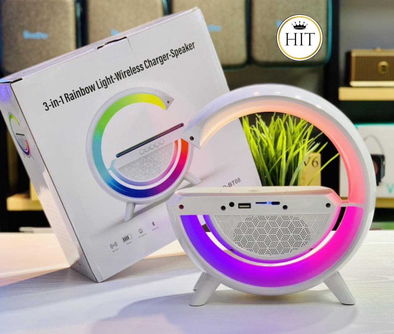 El parlante 3 en 1 inalámbrico viene con un soporte de carga, contiene iluminación LED y Parlante bluetooth