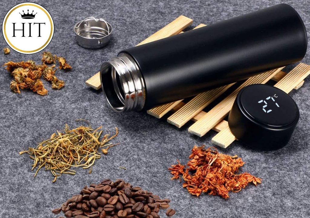 Esta taza de estilo tiene una pantalla LED inteligente de temperatura en la parte superior del termo que durará hasta 40.000 toques sin un cambio de batería.